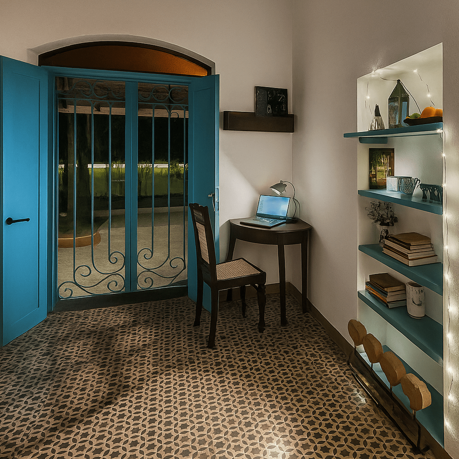 Soppo Rustic Cottage at Valentine Villa - a cozy, private heritage room with traditional Goan decor, vintage furniture, and a serene garden view for a perfect slow living escape.